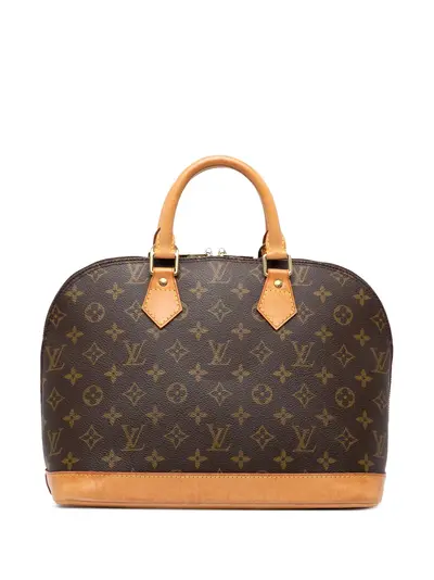 monogram canvas body with vachetta leather trim rolled vachetta leather handles top zip closure interior slip pocket brown Serial Number: VI1928 This item has no inclusions. Condition: GOOD. This previously owned and used item is in good condition with minimal signs of use. This may include fading of material or plating and scratches. Please refer to the photos on this product page for a detailed view of the item, including any damages declared.