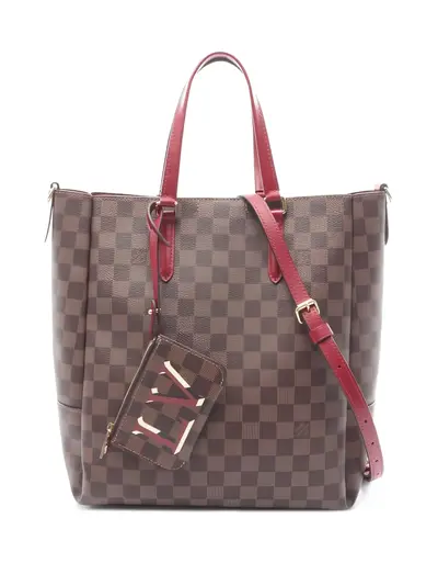 2020s brown check pattern top handles detachable adjustable shoulder strap gold-tone hardware internal zip pocket Condition: GOOD. This previously owned and used item is in good condition with minimal signs of use. This may include fading of material or plating and scratches.