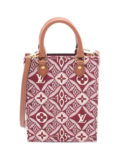 2020s bordeaux monogram jacquard leather trim top handles detachable shoulder strap gold-tone hardware Condition: GOOD. This previously owned and used item is in good condition with minimal signs of use. This may include fading of material or plating and scratches.
