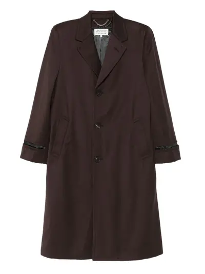dark brown button fastening notched lapels cuff detailing front welt pockets long sleeves