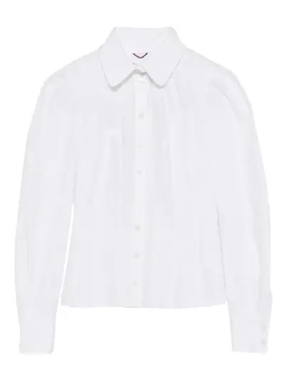 white front button fastening long sleeves puff sleeves buttoned cuffs