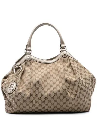 canvas body with leather trim rolled leather handles open top with magnetic snap closure interior zip pocket brown Serial Number: 211943 502752 Inclusions: charm. Condition: GOOD. This previously owned and used item is in good condition with minimal signs of use. This may include fading of material or plating and scratches. Declared Damages: Front Feature(s) Minor Loose Stitching. Please refer to the photos on this product page for a detailed view of the item, including any damages declared.