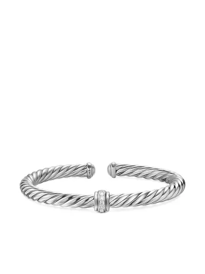sterling silver polished finish rope detailing open cuff design pavé-setting round-cut diamonds totalling 0.13 carats Normal everyday use and external agents may reduce the lustre of gemstones and gold surfaces. To maintain, use specific, non-abrasive products specially meant for cleaning jewellery. To ensure the shine and polish of your David Yurman piece, wash with a little non-bleach, soapy water and wipe clean with a soft cloth.