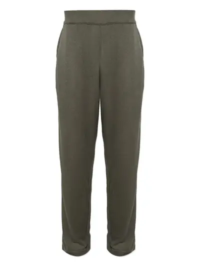 dark green elasticated waistband side pockets tonal stitching straight leg cuffed hem