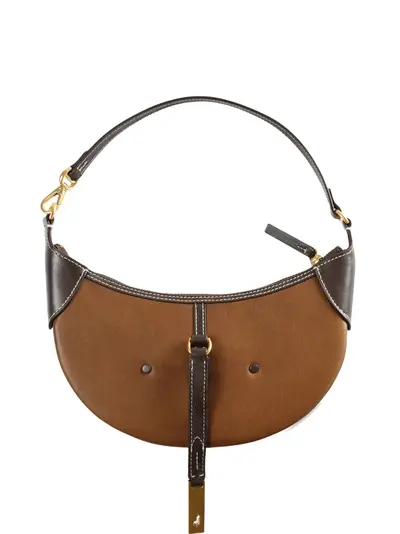 brown contrast stitch detail gold-tone hardware top zip fastening single top handle engraved Polo Pony logo motif