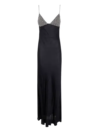 black embellished detail spaghetti straps V-neck logo plaque sleeveless