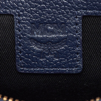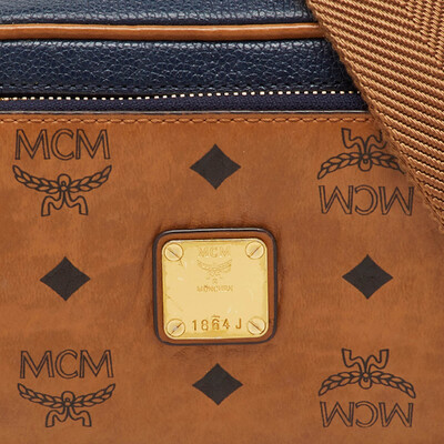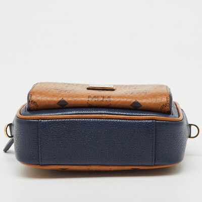 MCM Tan/Navy Blue Leather and Visetos Coated Canvas Small Klassik Crossbody Bag 1231398 (lpn31064463)