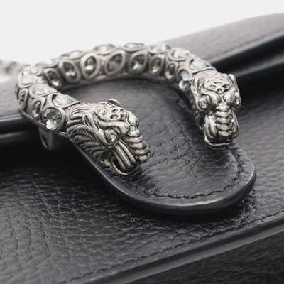 Gucci’s Super Mini Dionysus Crossbody in midnight black leather is petite yet magnetic. Its compact frame carries mythic intensity with modern sophistication. A tiny treasure that leaves a lasting impression.