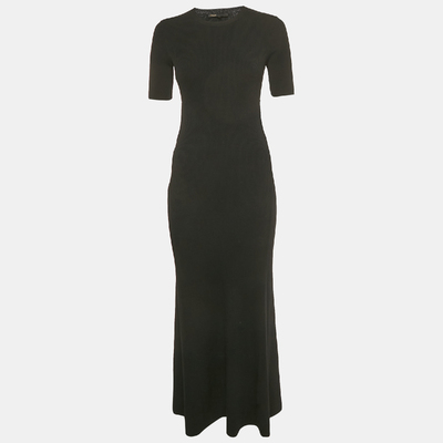 Maje’s rib knit dress strikes a balance between contemporary allure and refined craftsmanship. Rendered in black with openwork detailing, it features a slim silhouette that contours gracefully. The midi to long length adds sophistication, making it suitable for both day and evening wear. Pair with strappy sandals or heeled boots for an elevated finish.