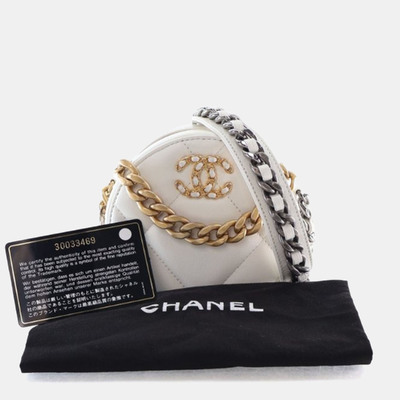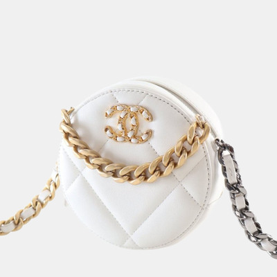 Chanel White Calfskin 19 Round Clutch With Chain 1231536 (белый, lpn31064497)