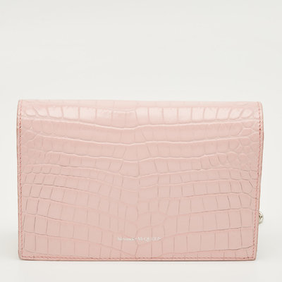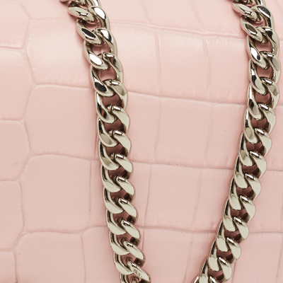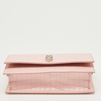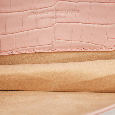 A statement piece in soft pink, this authentic Alexander McQueen bag for women pairs croc textured leather with a crystal embellished skull chain. Compact yet striking, it’s the kind of bag that turns an everyday outfit into something memorable.