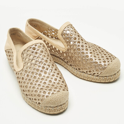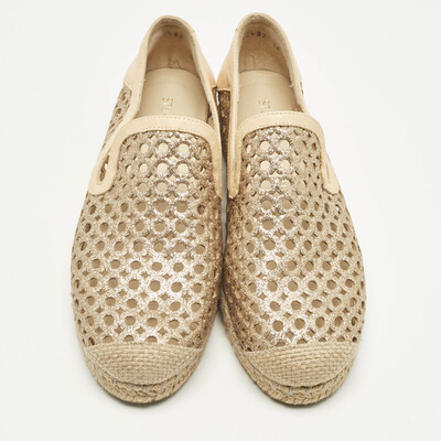 Metallic gold leather wraps the foot in these Stuart Weitzman flats and delivers unlimited sparkle. The espadrille style sole gives a relaxed texture, making them perfect for long days or casual evenings.