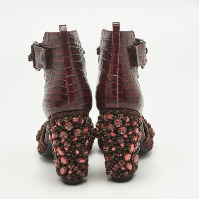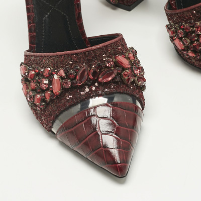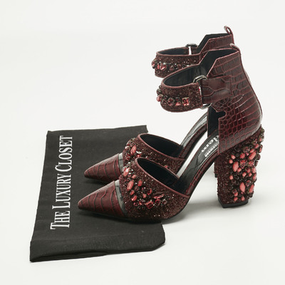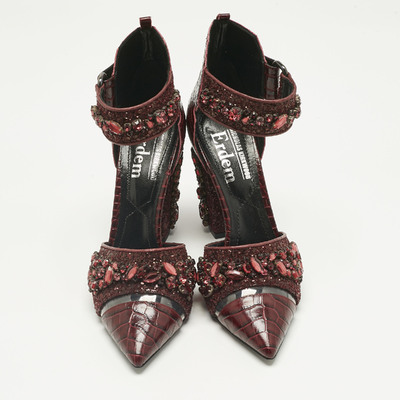Nicholas Kirkwood Burgundy Croc Embossed and Crystal Embellished Pumps Size 36 1231339 (lpn31064575)