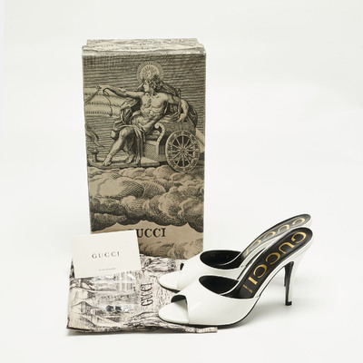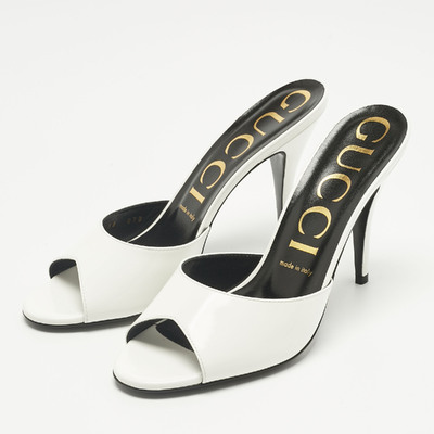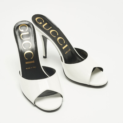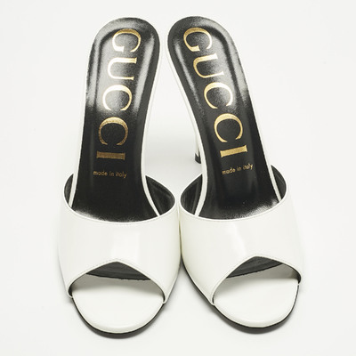 Minimal yet striking, these Gucci slide sandals are crafted in glossy white patent leather for a clean and modern finish. Designed for everyday ease, they pair perfectly with summer dresses, denim, or resort wear. A fresh staple with luxury appeal.