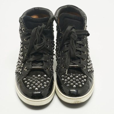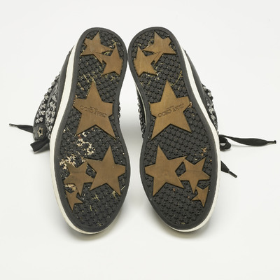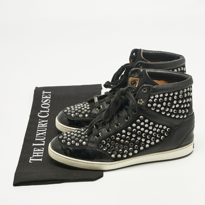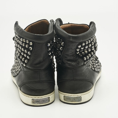 Jimmy Choo Black Leather and Suede Crystal Embellish High Top Sneakers Size 37 1230014 (чёрный, lpn31064642)