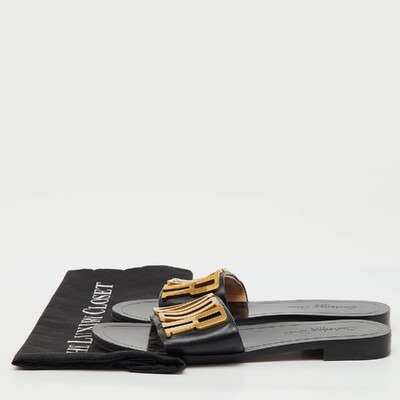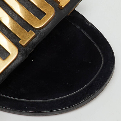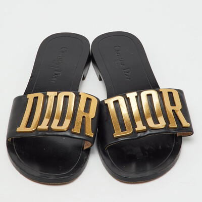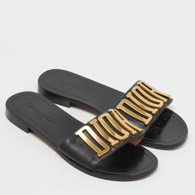 Step into effortless luxury with these Dior Diorevolution flat slide sandals crafted in sleek black leather. Featuring the bold gold tone logo across the strap, they blend comfort with iconic branding. Perfect for elevating casual summer looks with designer flair.