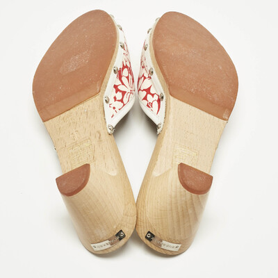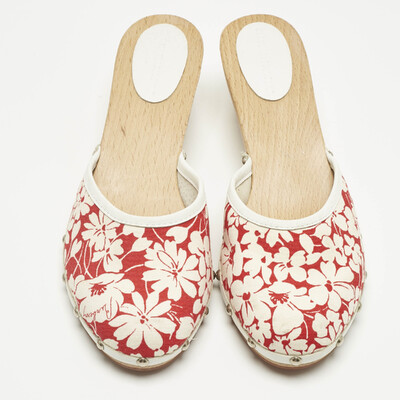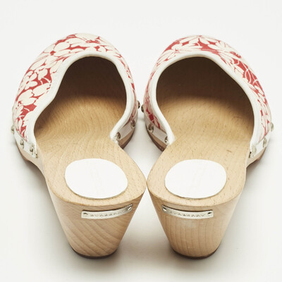 Burberry Cream/Red Flora Canvas and Leather Mules Size 38 1230075 (lpn31064766)
