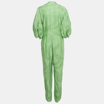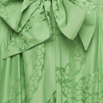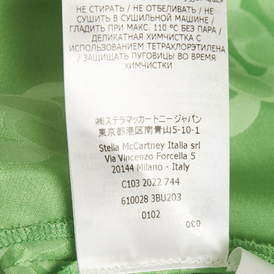 Tailored in green jacquard fabric, this Stella McCartney jumpsuit ties at the waist to create shape while maintaining an effortless drape. It’s a modern, all in one piece that channels the brand’s easy sophistication.