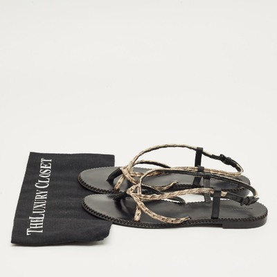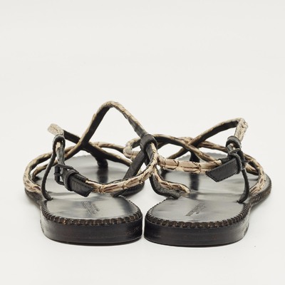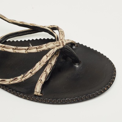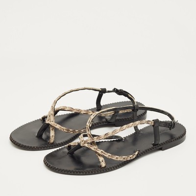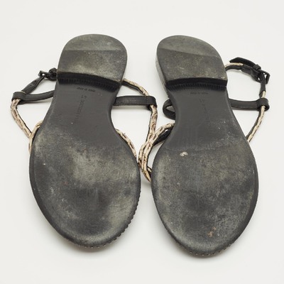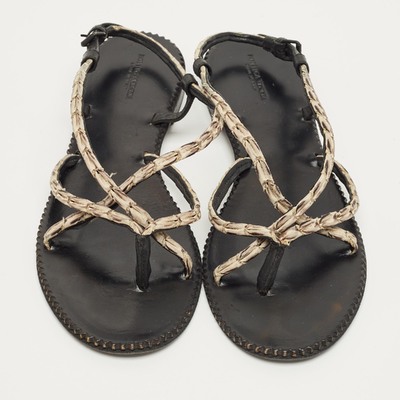 Bottega Veneta White/Black Leather Strappy Thong Sandals Size 41 1229683 (чёрный, lpn31064827)