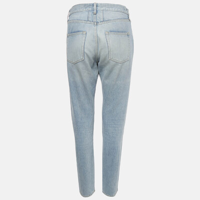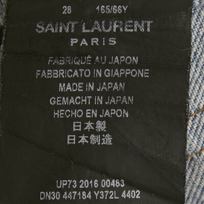 Saint Laurent brings a classic update to casualwear with these blue faded skinny jeans. Designed with a flattering mid rise waist and a sleek leg, they deliver Parisian edge in every step. Wear them with a tucked in blouse and heels for an effortless day to evening look.