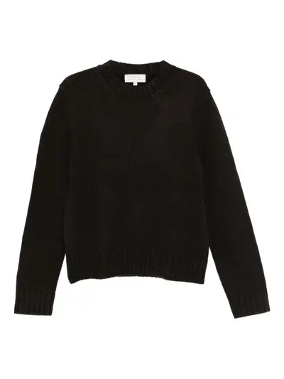 brown wool crew neck long sleeves ribbed cuffs and hem