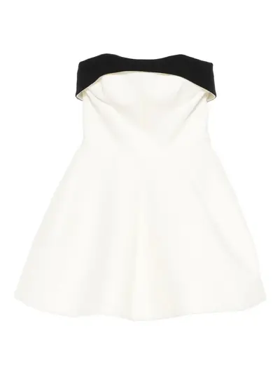 white strapless panelled design above-the-knee length a-line skirt black trim