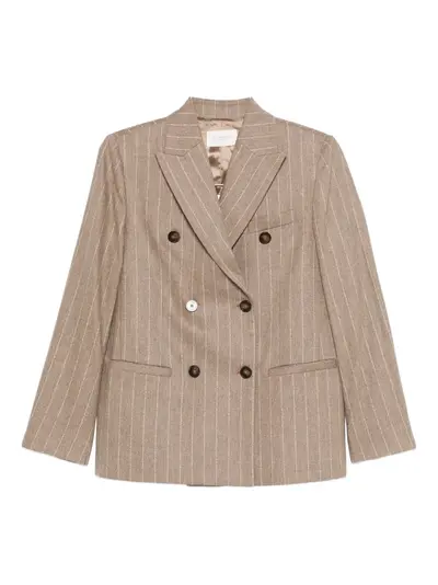 beige pinstripe pattern double-breasted button fastening notched lapels front welt pockets