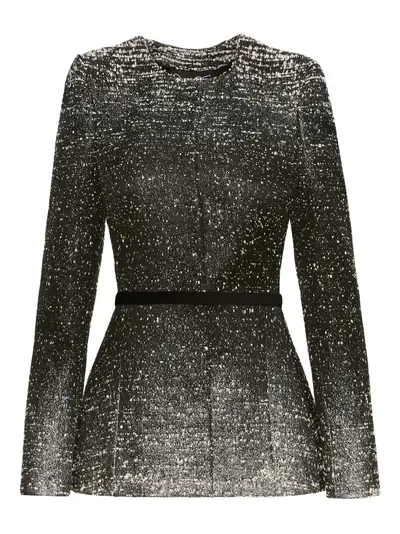 black and ivory lurex detail bouclé texture jacquard pattern belt long sleeves