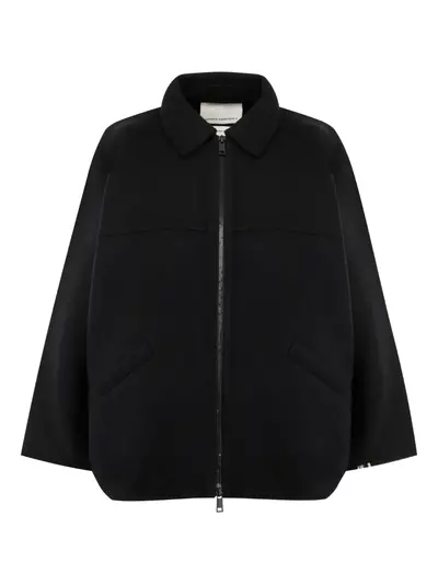 raven zip fastening pointed collar front pockets long sleeves straight hem