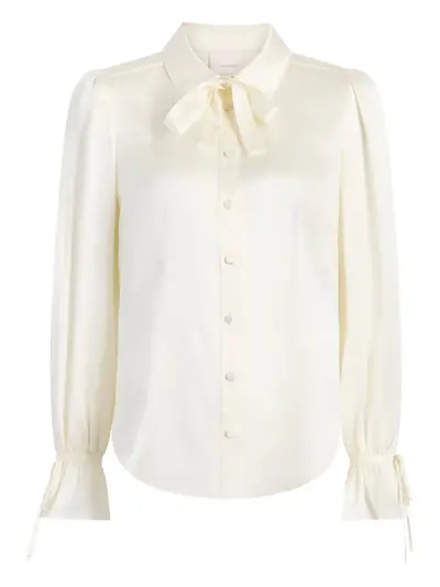 ivory collar and cuffs tie detail button fastening long sleeves silk