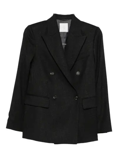black double-breasted button fastening peak lapels flap pockets buttoned cuffs
