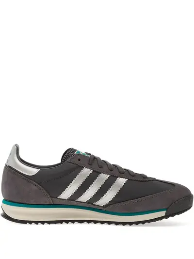 grey signature 3-Stripes logo metallic effect logo detailing lace-up fastening ridged rubber sole panelled design