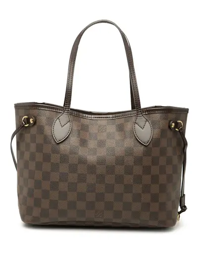 damier ebene canvas body with leather trim flat leather straps open top with lobster clasp closure interior zip pocket brown Serial Number: VI4130 This item has no inclusions. Condition: GOOD. This previously owned and used item is in good condition with minimal signs of use. This may include fading of material or plating and scratches. Declared Damages: Interior Lining Feature(s) Moderate Stains. Please refer to the photos on this product page for a detailed view of the item, including any damages declared.