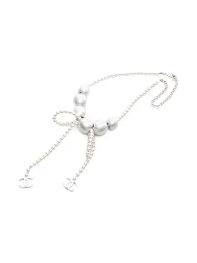 1986-1988 silver and ivory faux-pearl embellishment logo detail lobster clasp fastening Condition: GOOD. This previously owned and used item is in good condition with minimal signs of use. This may include fading of material or plating and scratches.