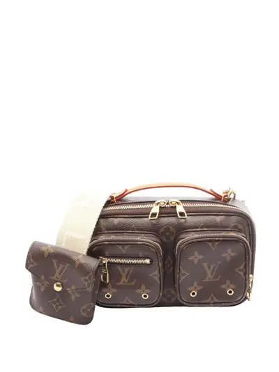 monogram canvas body flat top handle detachable flat strap zip around closure exterior front zip pockets interior slip pocket brown Inclusions: pouch, shoulder strap. Condition: EXCELLENT. This previously owned item is in near-perfect condition with no signs of damage or use. Due to the exclusivity of this item and its limited availability, processing and delivery might take longer than usual. Please refer to the photos on this product page for a detailed view of the item, including any damages declared.