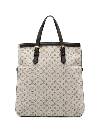 monogram mini lin canvas body with leather trim flat leather handles open top interior zip pocket brown Serial Number: SP0032 This item has no inclusions. Condition: GOOD. This previously owned and used item is in good condition with minimal signs of use. This may include fading of material or plating and scratches. Please refer to the photos on this product page for a detailed view of the item, including any damages declared.