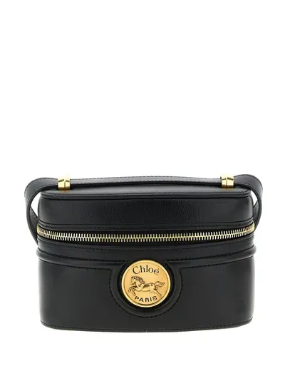 black metal medal engraved logo zip closure adjustable shoulder strap gold-tone hardware