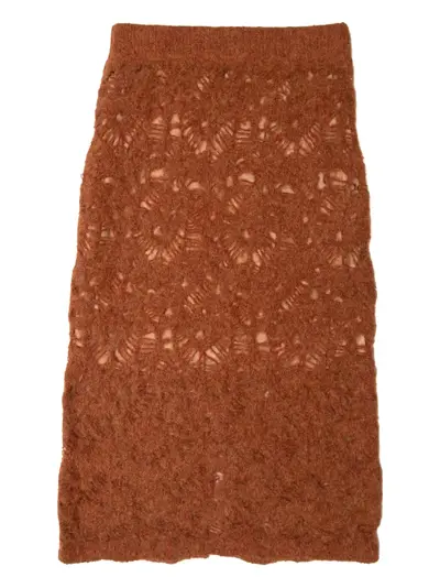 brown lace insert knitted openwork pattern midi length