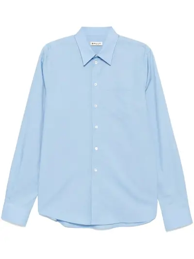 sky blue front button fastening chest patch pocket buttoned cuffs curved hem