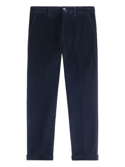 navy blue corduroy texture side pockets turn-up hem belt loops