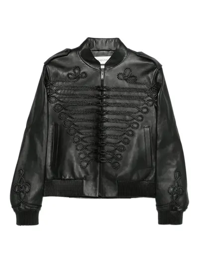 black embroidered detailing zip fastening ribbed hem ribbed cuffs shoulder epaulettes