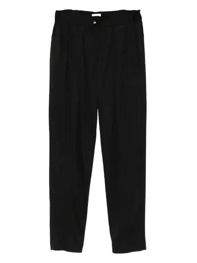 black pleated detailing front pockets button fastening textured finish elasticated waistband