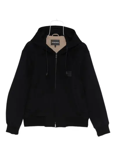 midnight blue front two-way zip fastening long sleeves ribbed cuffs and hem drawstring hood