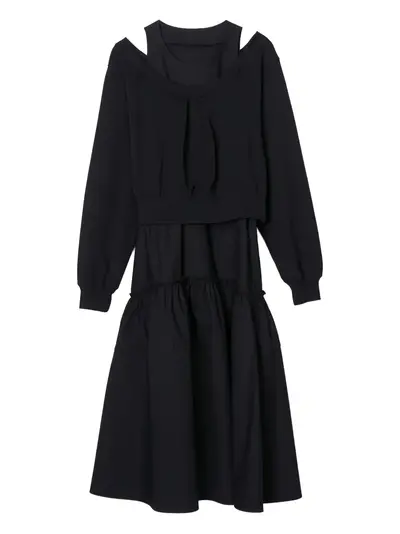 black tiered design cold-shoulder design long sleeves elasticated waist
