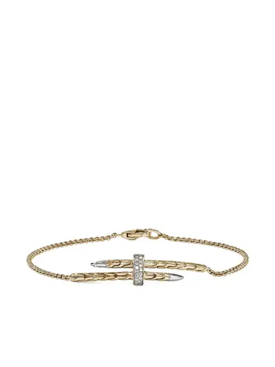 silver-tone sterling silver chain 14k yellow gold detail pavé-set round-cut diamonds lobster fastening woven design Normal everyday use and external agents may reduce the lustre of gemstones and gold surfaces. To maintain, use specific, non-abrasive products specially meant for cleaning jewellery.