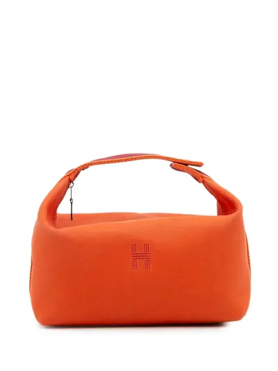 canvas body flat handle top zip closure interior slip pockets orange Serial Number: H103223M 05 This item has no inclusions. Condition: GOOD. This previously owned and used item is in good condition with minimal signs of use. This may include fading of material or plating and scratches. Please refer to the photos on this product page for a detailed view of the item, including any damages declared.
