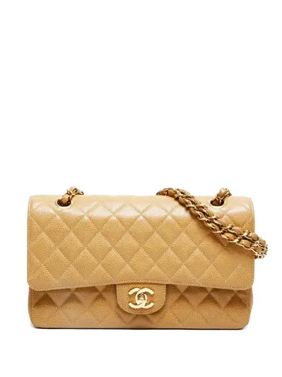 2003-2004 beige caviar leather quilted gold-tone hardware chain strap flap top Serial Number 8255120 Condition: GOOD. This previously owned and used item is in good condition with minimal signs of use. This may include fading of material or plating and scratches.