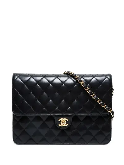 2010-2011 black diamond quilted chain strap gold-tone logo detail half flap design Serial Number 14954277 Condition: GOOD. This previously owned and used item is in good condition with minimal signs of use. This may include fading of material or plating and scratches.