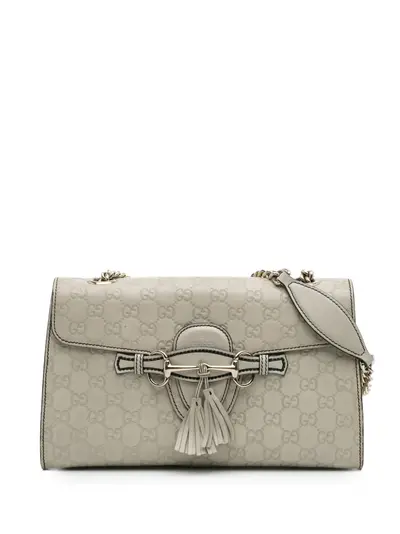 embossed leather body curb chain strap front flap with a slip through closure tassel detail interior slip pockets white Serial Number: 295402 520981 This item has no inclusions. Condition: EXCELLENT. This previously owned item is in near-perfect condition with no signs of damage or use. Please refer to the photos on this product page for a detailed view of the item, including any damages declared.