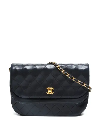 1980s black diamond stitch gold-tone hardware chain shoulder strap internal zip pocket turn-lock fastening Serial Number 379050 Condition: GOOD. This previously owned and used item is in good condition with minimal signs of use. This may include fading of material or plating and scratches.